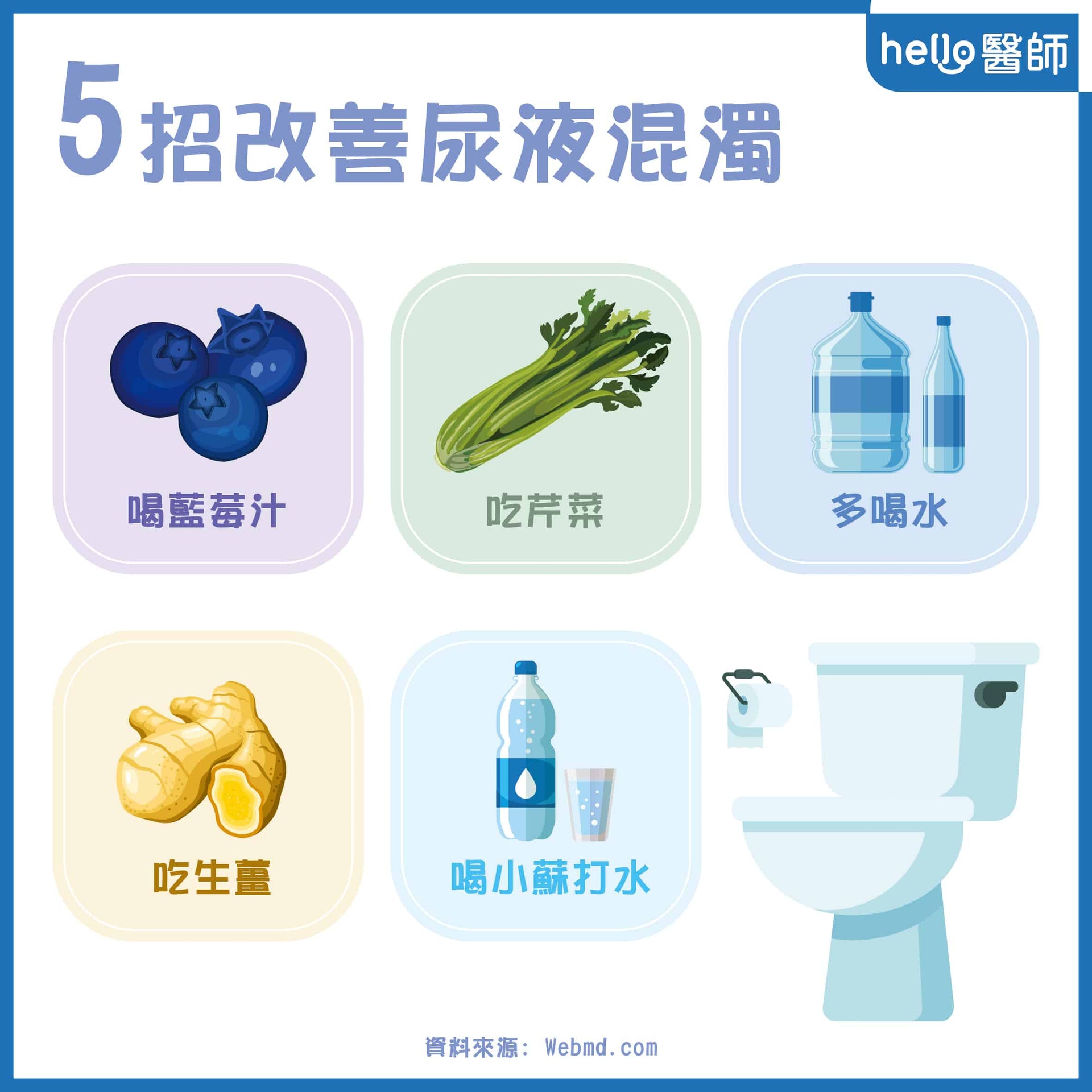 尿液會變混濁的原因,和尿道感染、膀胱炎等症狀相關,想要改變,可在家裡嘗試以下五種方法: