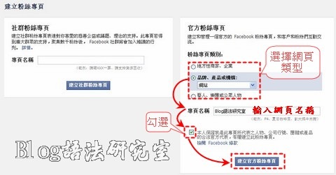 記得要勾選「本人保證…」,然後按「建立官方粉絲專頁」按鈕。
